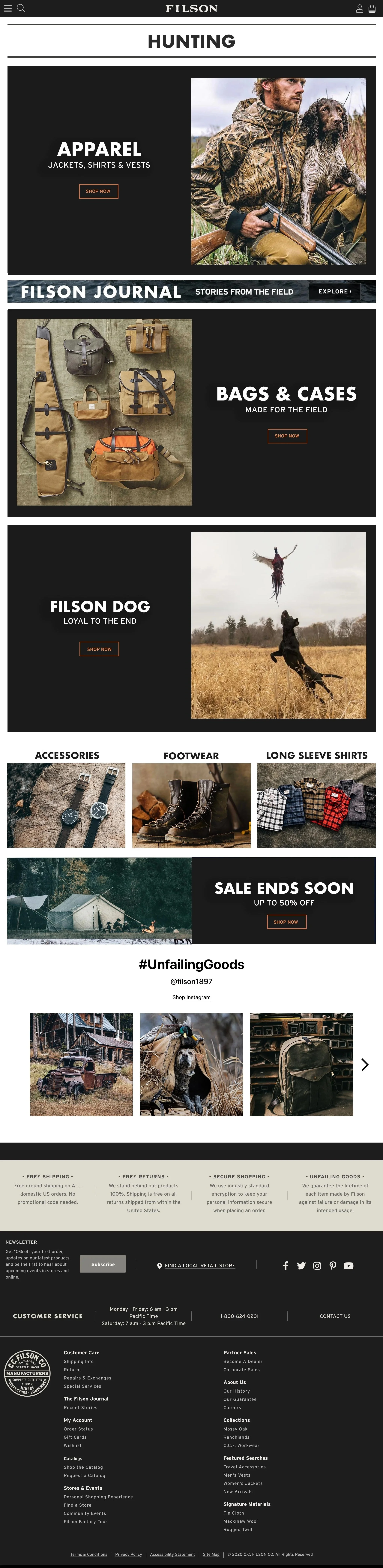 Delivered landing pages that reinforced campaign storytelling and maintained Filson’s heritage brand identity.