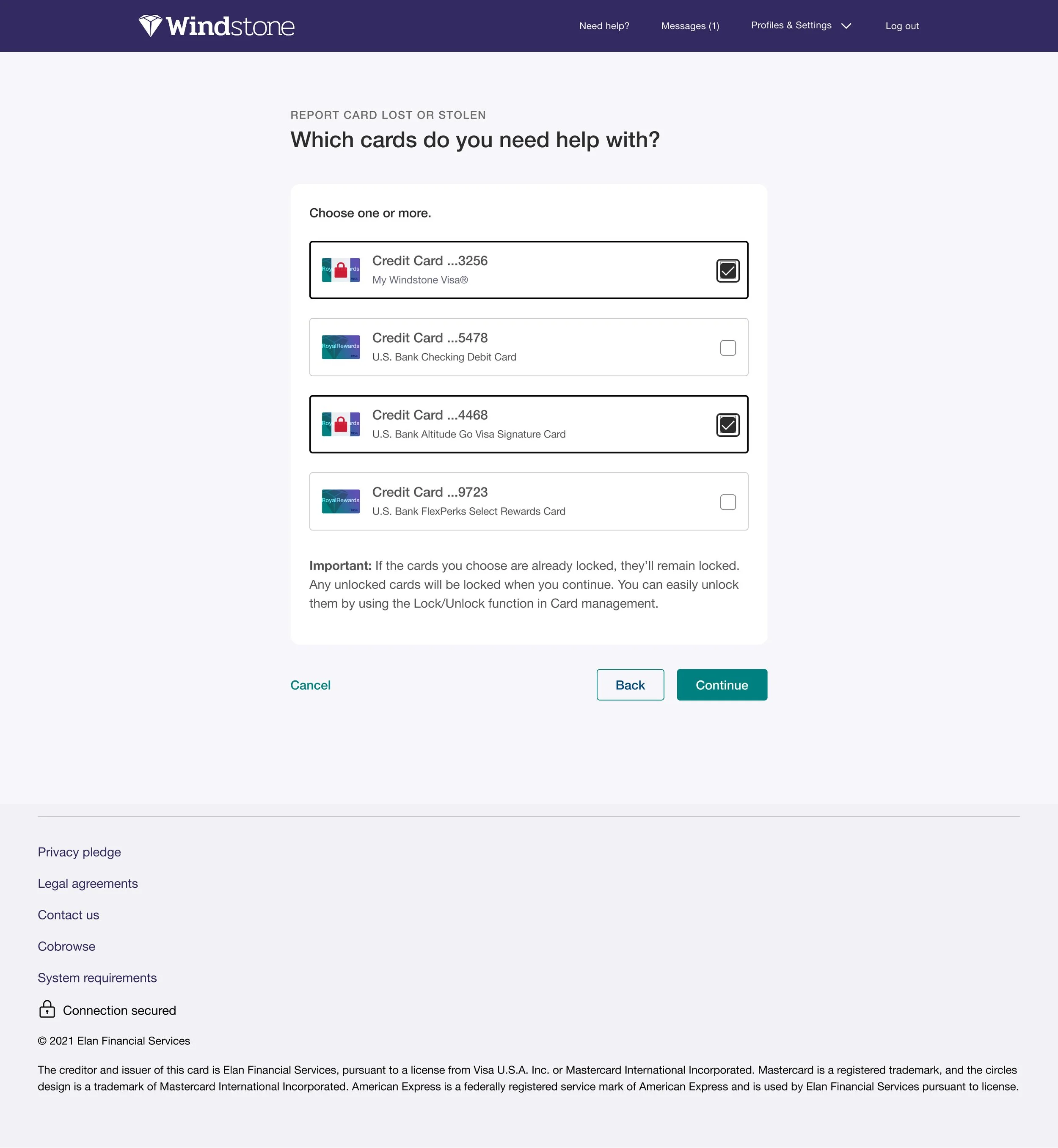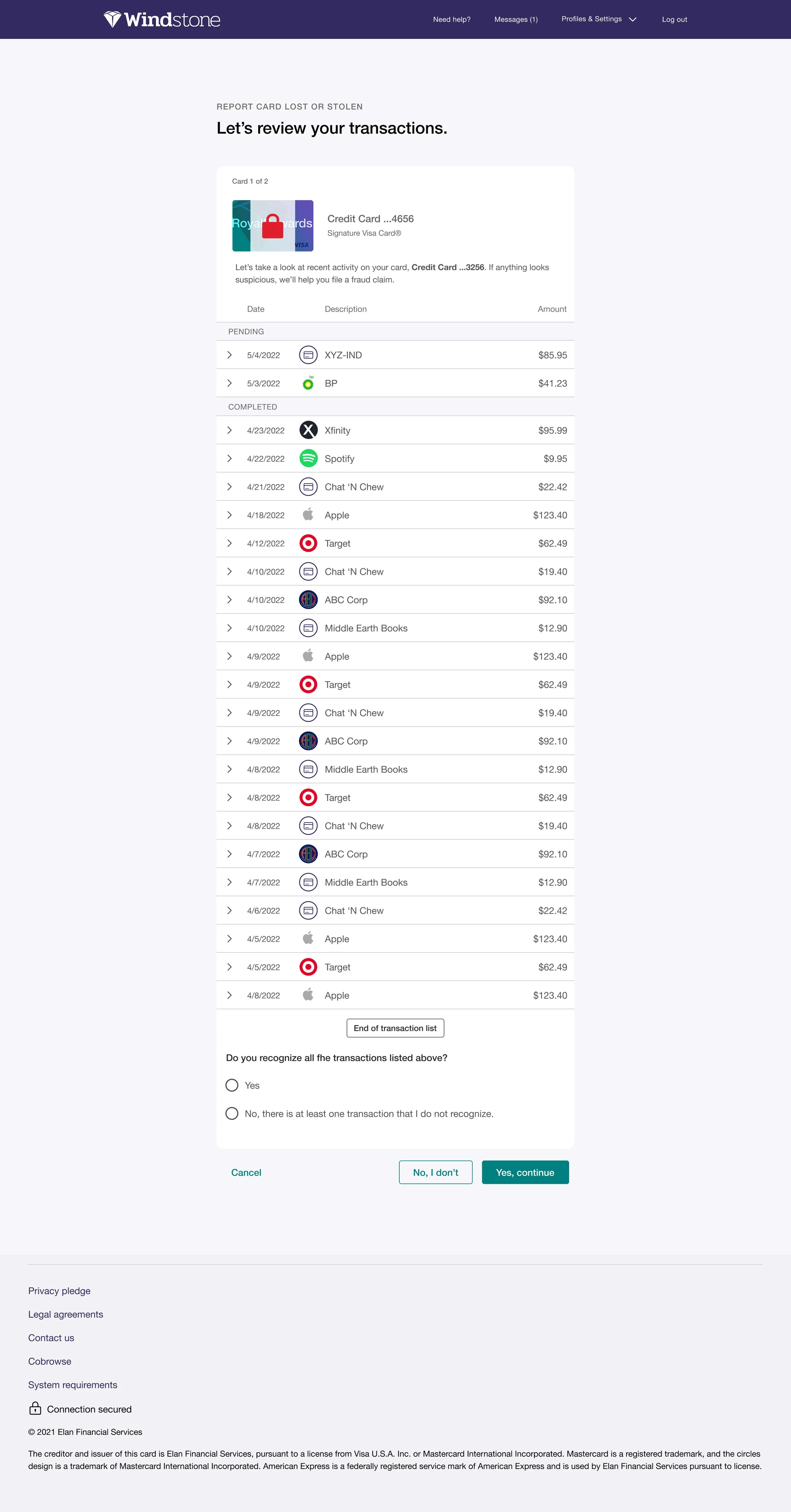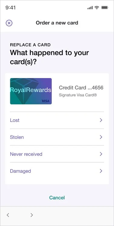 As the primary product designer for the partner card platform, I worked closely with the US Bank team to deliver an improved Lost/Stolen/Never Received card experience. While the partner card platform made a number of improvements to the overall design. This included: